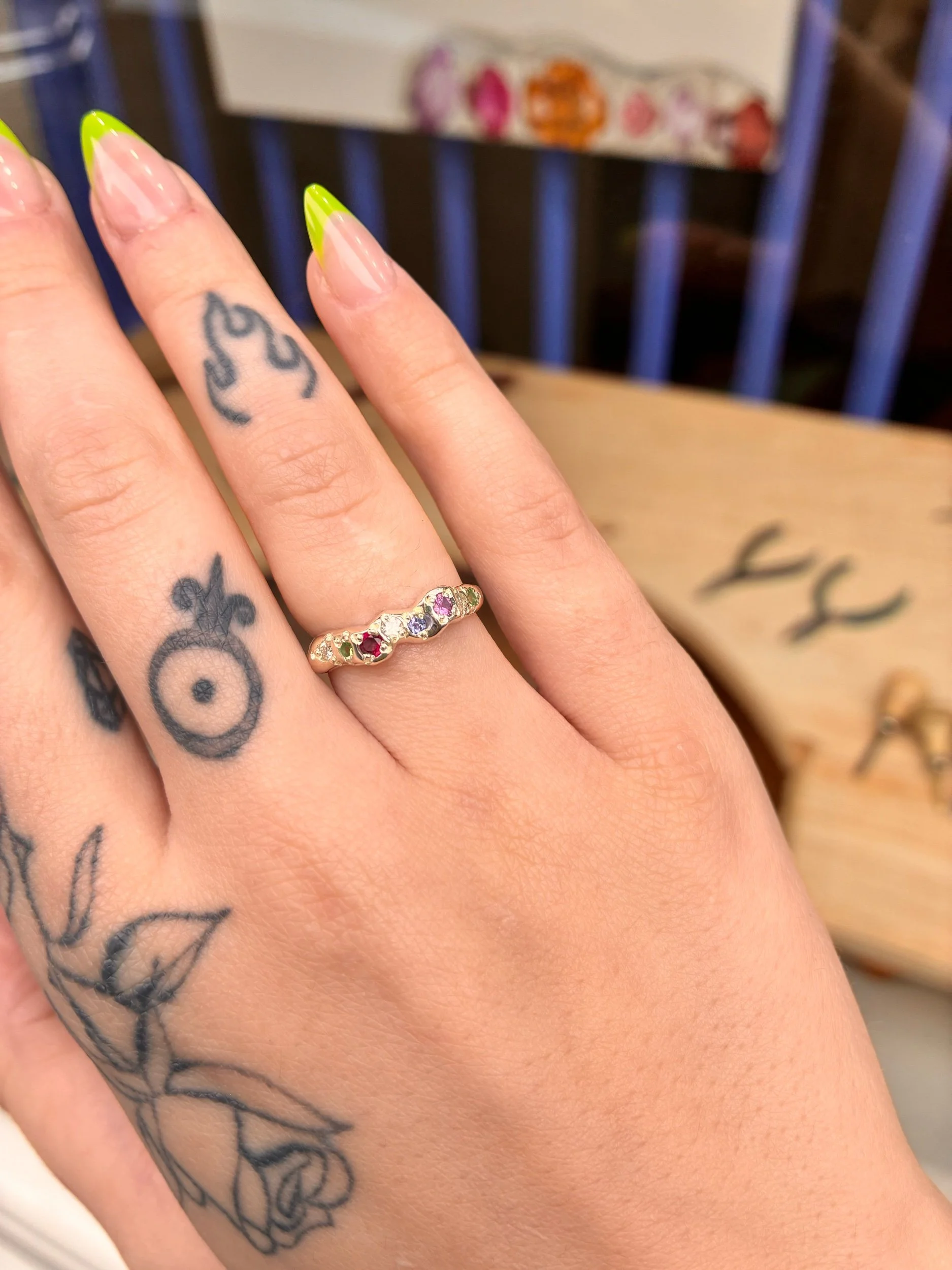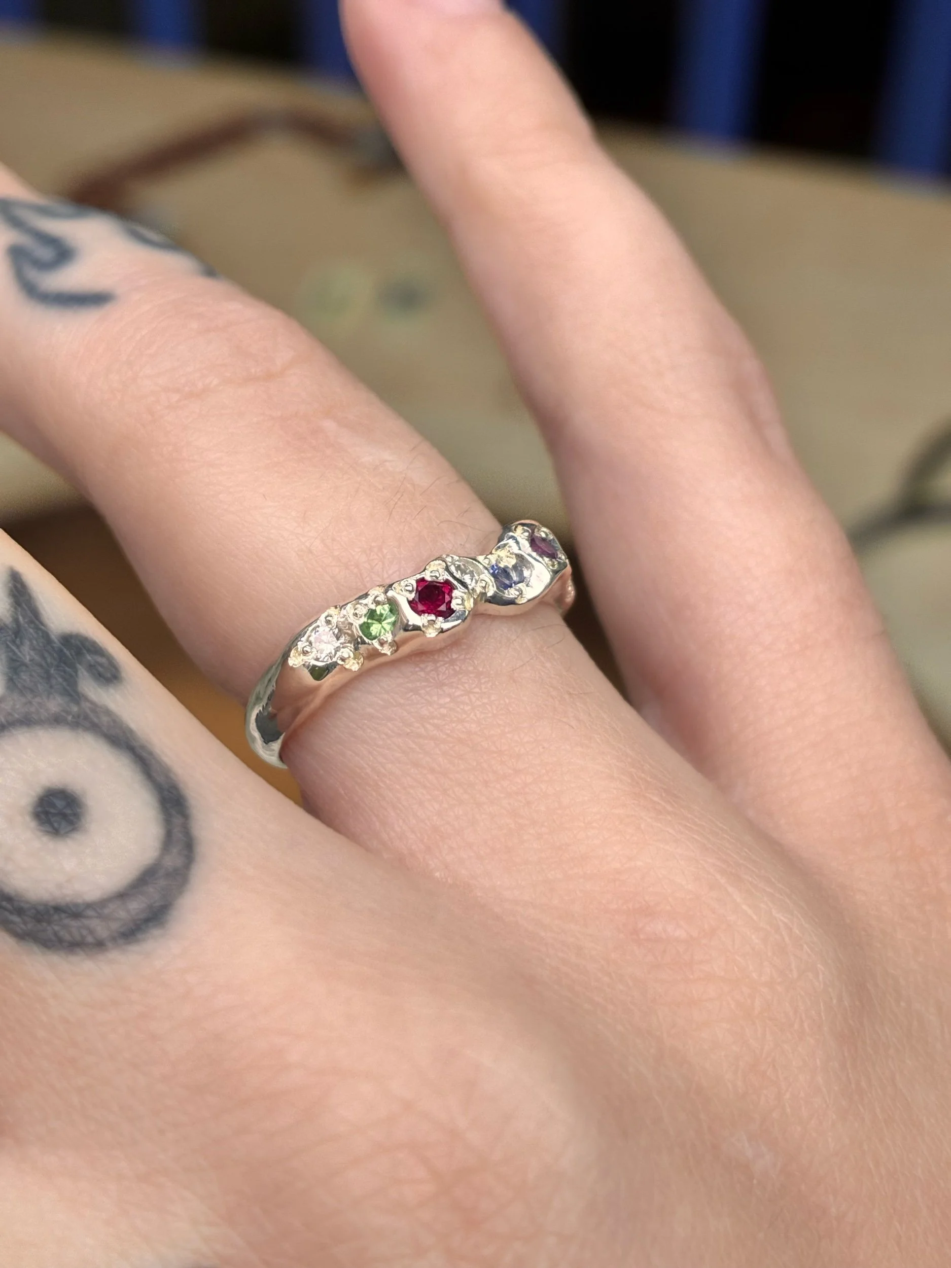stones → tsavorite garnet, lab grown ruby, pink sapphire, tanzanite, lab grown moissanite