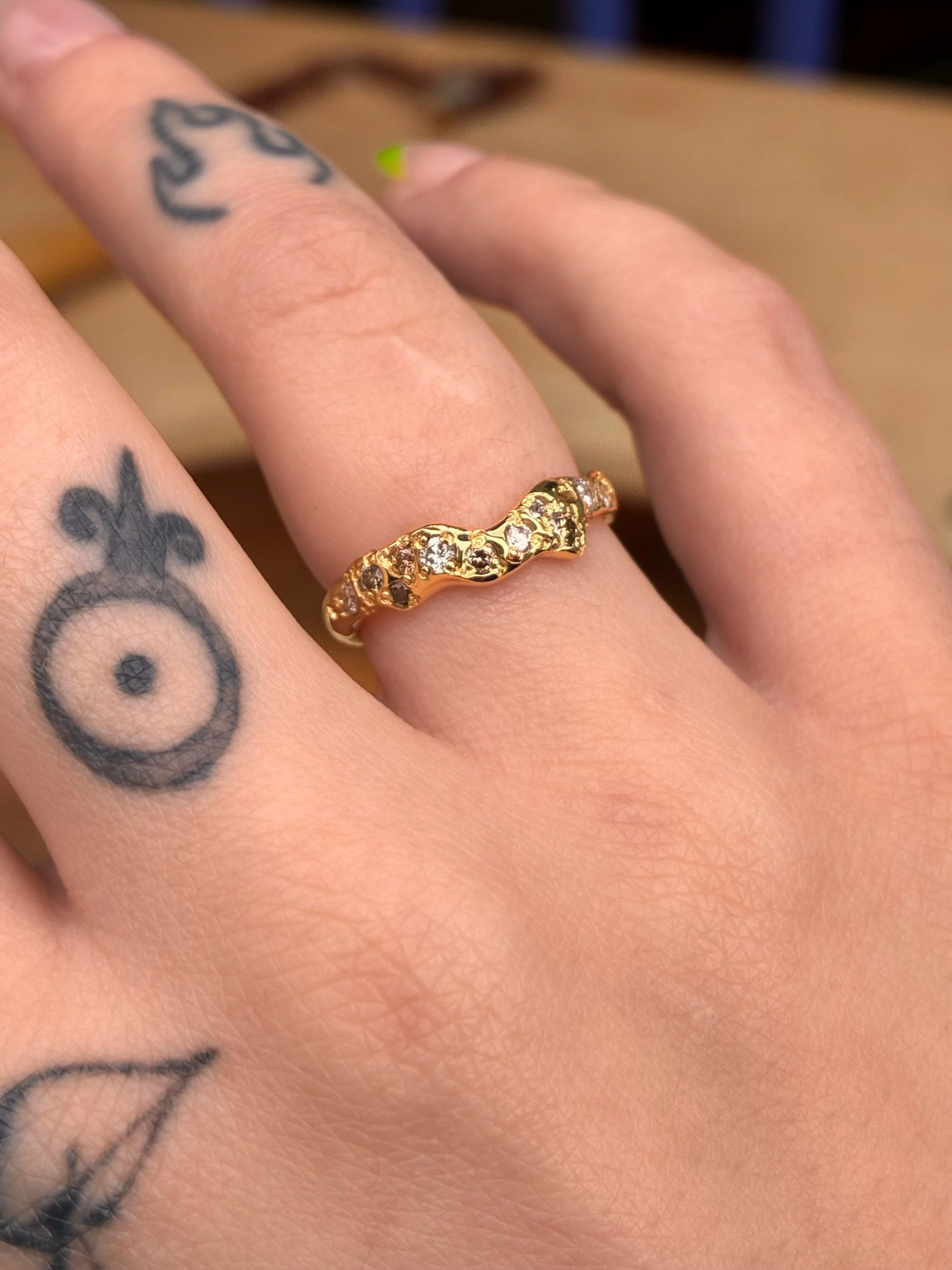 “sweet cinnamon” is particularly special as it acts as a stand alone ring, a fitted wedding band or a dynamic stacking piece.