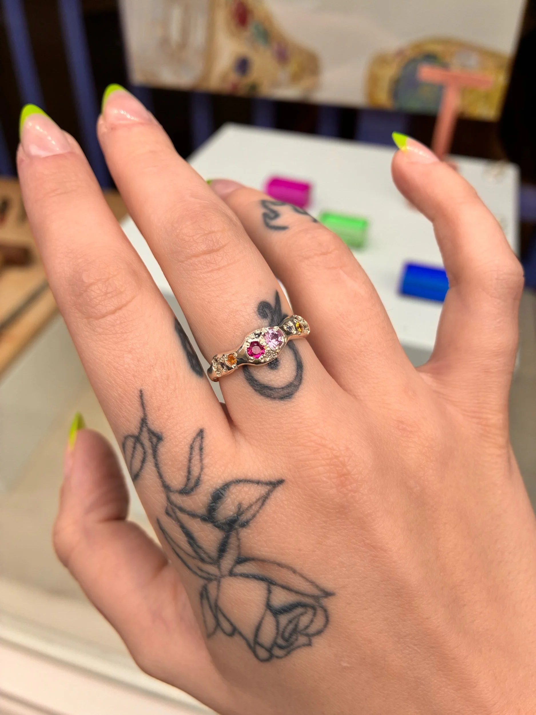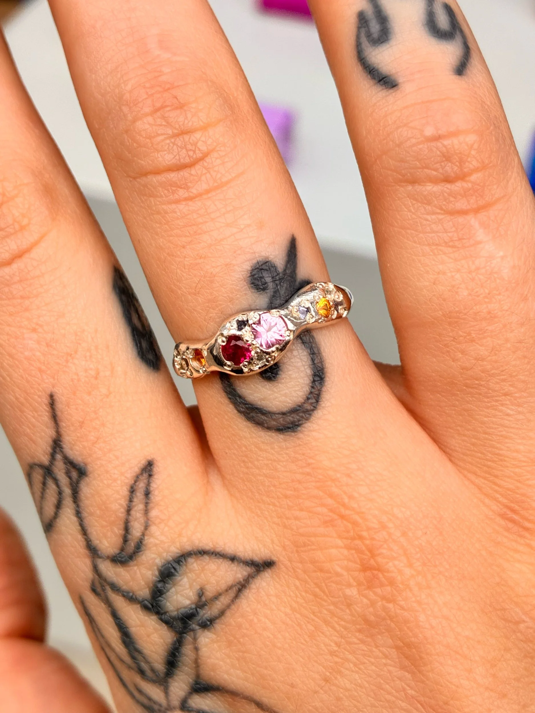 a uniquely pretty colourway in susannah’s new style of band. a small but punchy pop of colour perfect for stacking or for wearing alone.